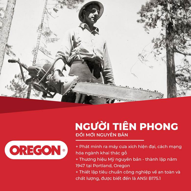 Oregon là thương hiệu hàng đầu thế giới về các sản phẩm và phụ kiện cho máy cưa xích, máy cắt cỏ và thiết bị lâm nghiệp. Với hơn 70 năm kinh nghiệm, Oregon đã trở thành biểu tượng của sự tin cậy, đổi mới và hiệu suất làm việc vượt trội. Dưới đây là những lý do then chốt giải thích vì sao Oregon luôn là lựa chọn hàng đầu của các chuyên gia và người dùng trên toàn cầu.